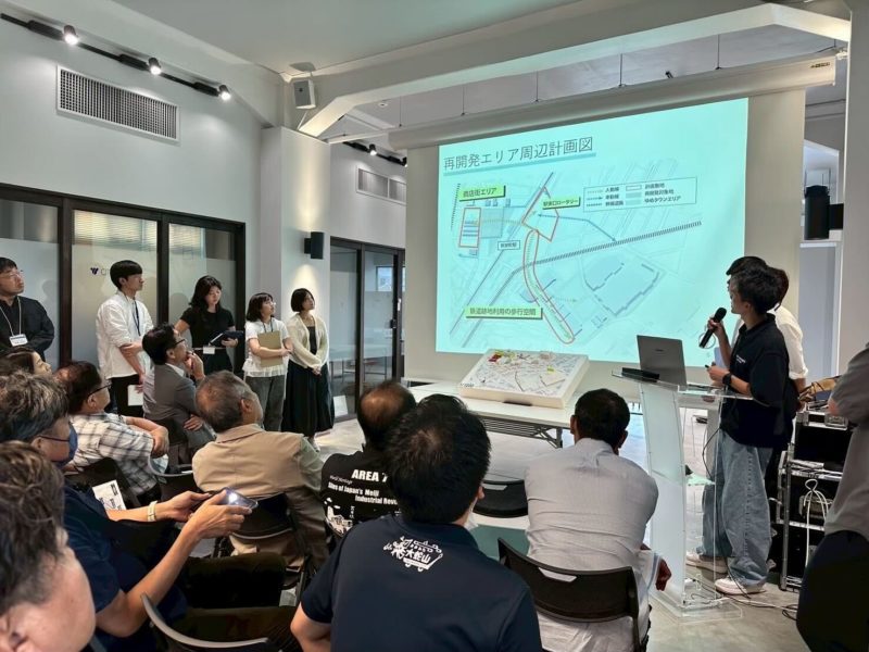 大牟田市長の関好孝氏や一般社団法人アーバンデザインセンターおおむた職員、大牟田市商工会と地域住民の皆さんを招き、最終発表を行いました。