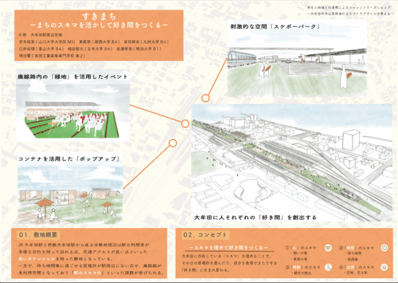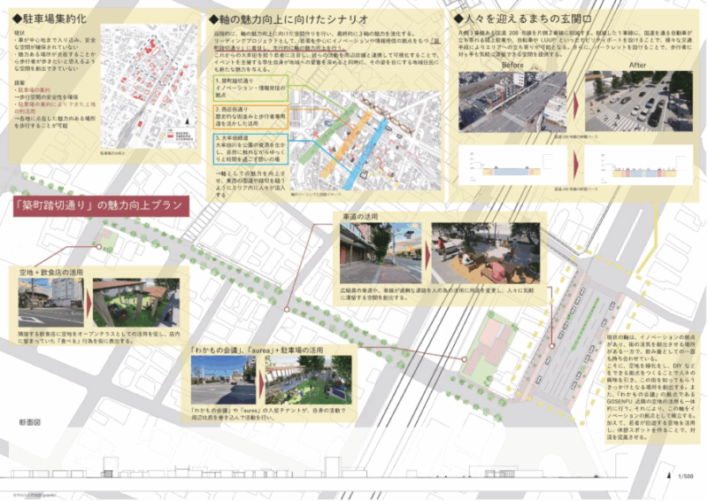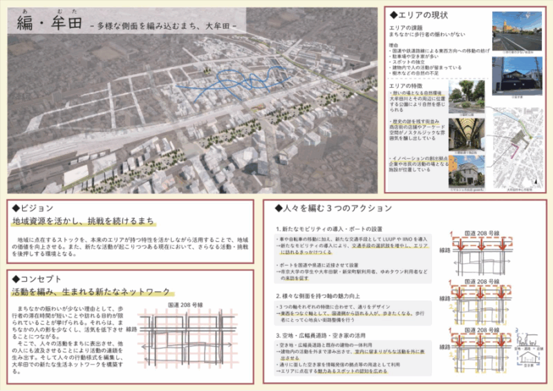 以下、都市計画研究室(泉山ゼミ)の学生が関わった3つのグループの提案を紹介します。
