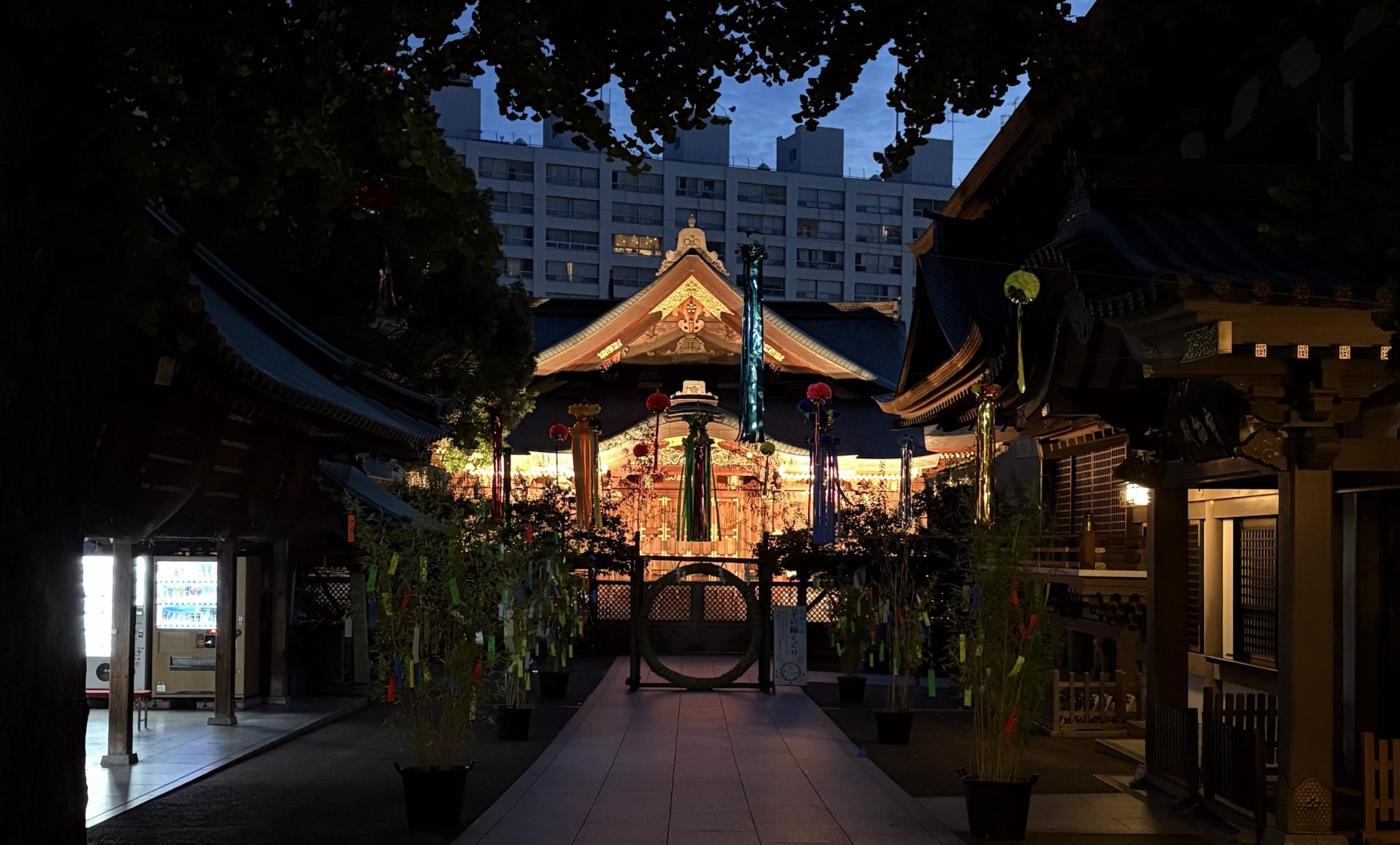(山本)この写真を撮った場所は、どこだか分かりますか?タワー・スコラから少し遠いかもしれませんが、湯島天満宮の写真を撮ってきました!遅くまで飲み会を楽しんだ後、朝4時半くらいに撮った写真なのですが、夏の時期でぼんぼりみたいなものが、とても綺麗だったので、この場所の写真を持ってきました!