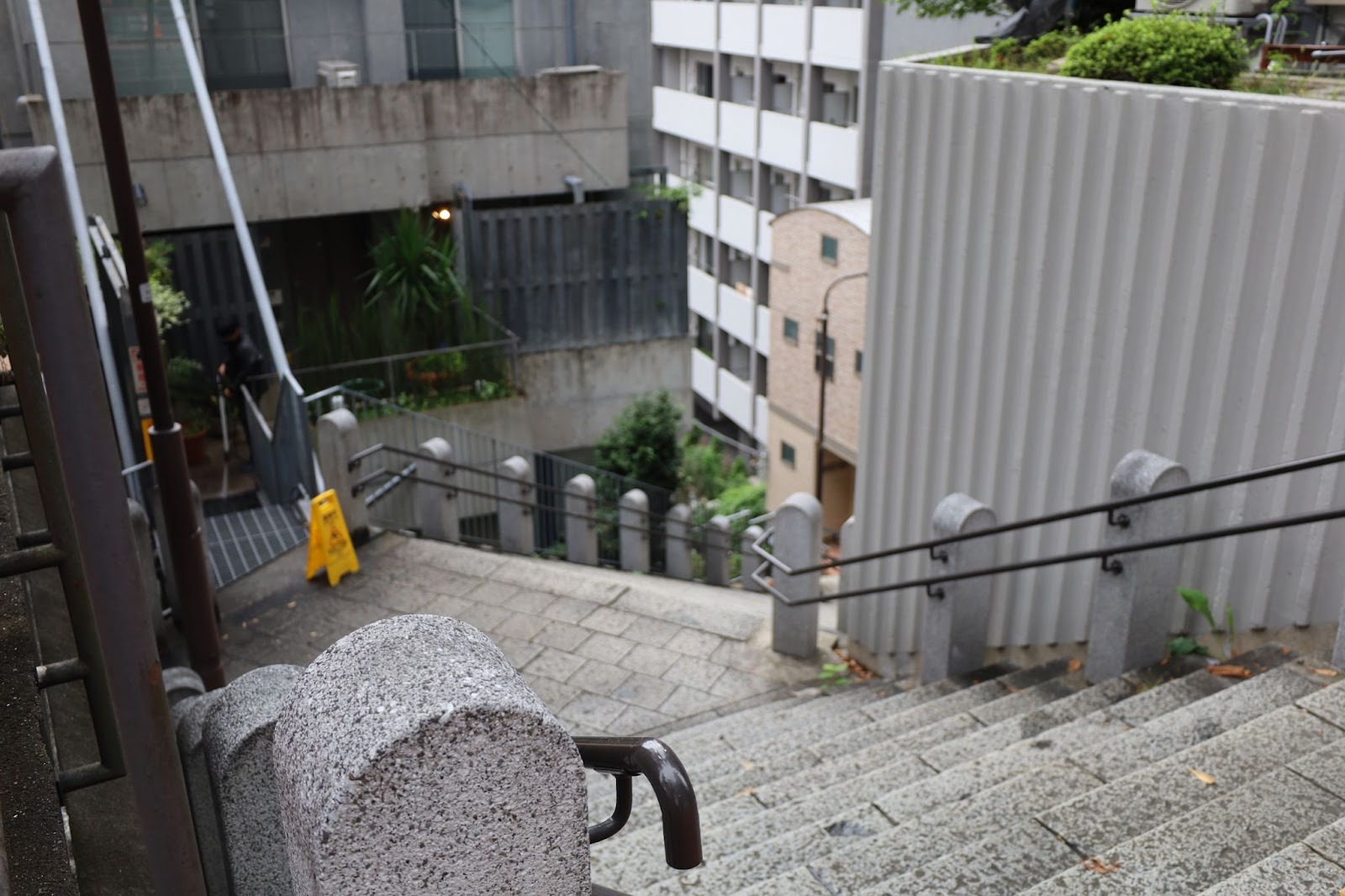 (及川)最後に紹介するのは、こちら。劇場版「チェンソーマン レゼ篇」に登場する女坂です。1924年に震災復興区画整理事業として整備された通路で、途中に踊り場があって女性でも登りやすいことから女坂と名付けられました。近くの直線的に登る坂は「男坂」と名付けられています。