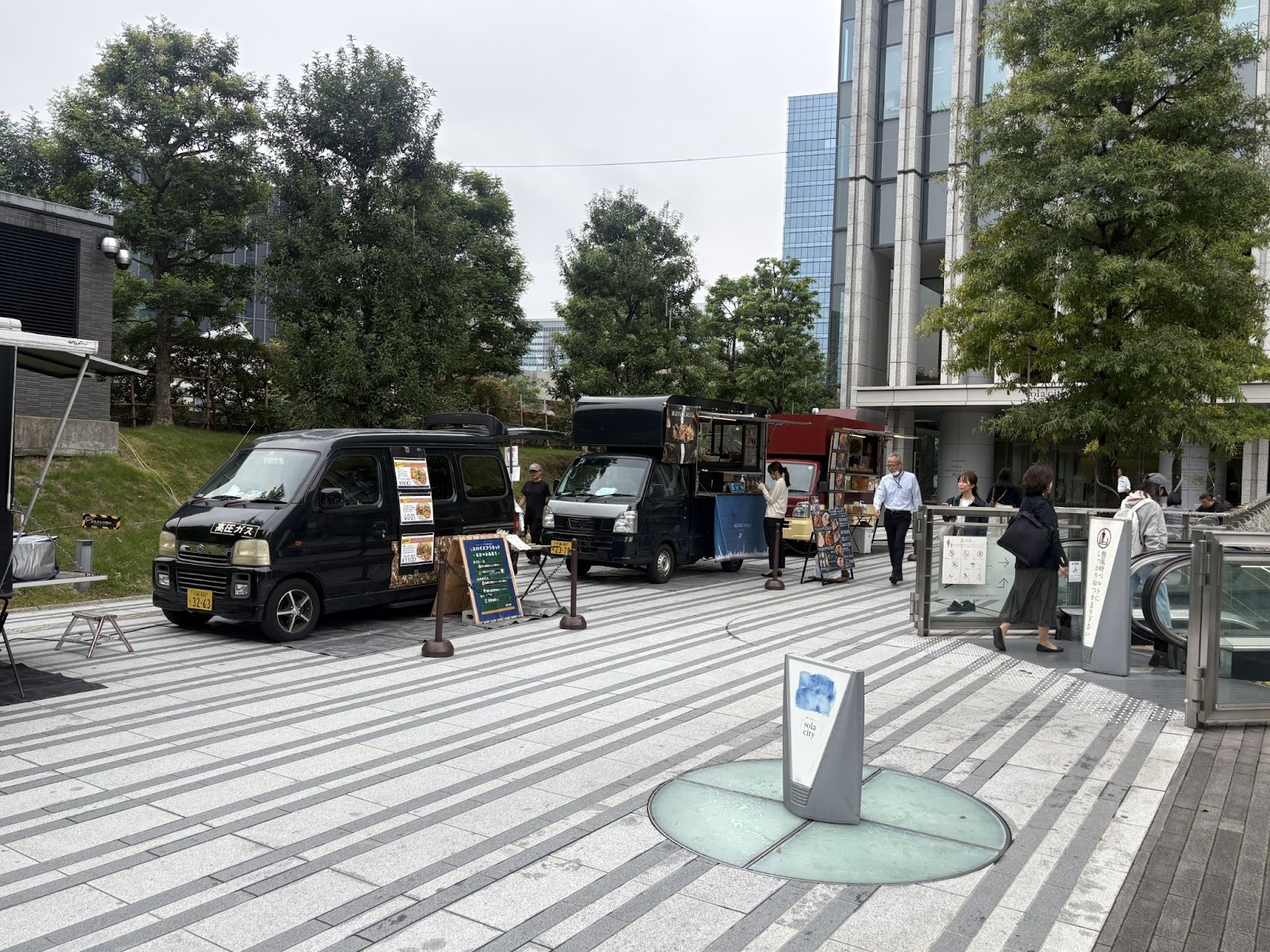 (五味)私も御茶ノ水ソラシティの写真を撮ってきました!1階部分の公開空地では、毎日異なる種類のキッチンカーが停まっているので、よく利用しています。最近、御茶ノ水駅の工事が行われて、駅の出入り口も変わったことで、動線的にもとても利用しやすい場所になっていると思います。