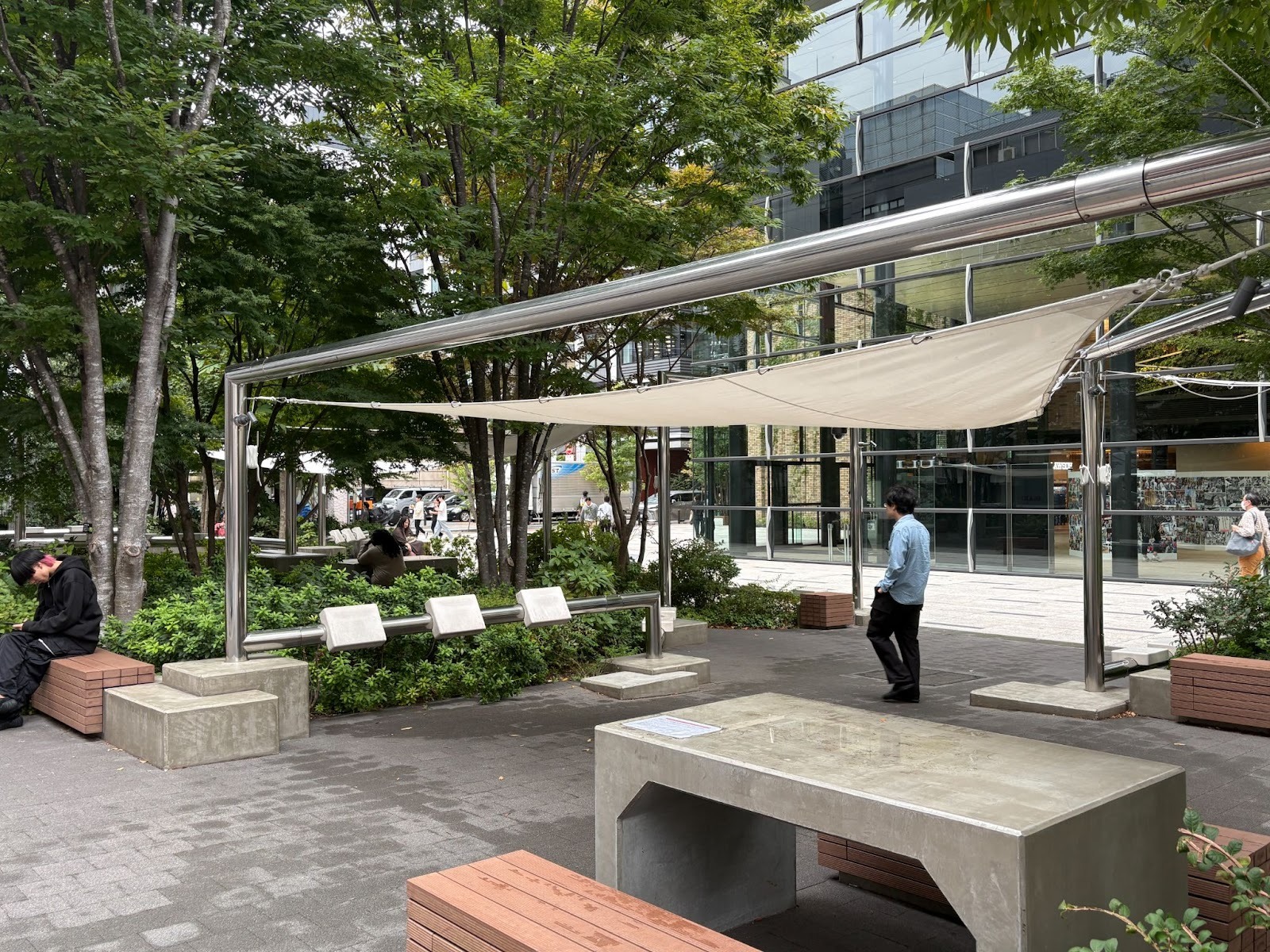 ありきたりなデザインじゃないのがとても魅力的ですよね。公開空地をどのように利用してもらうか考えたときに、イベントを開催したりっていうところだけに目がいきがちですが、このKANDA SQUAREのようにステンレスのポールや、屋根のような白い膜で空間的操作が行われているのは珍しくて、魅力的だと思います!