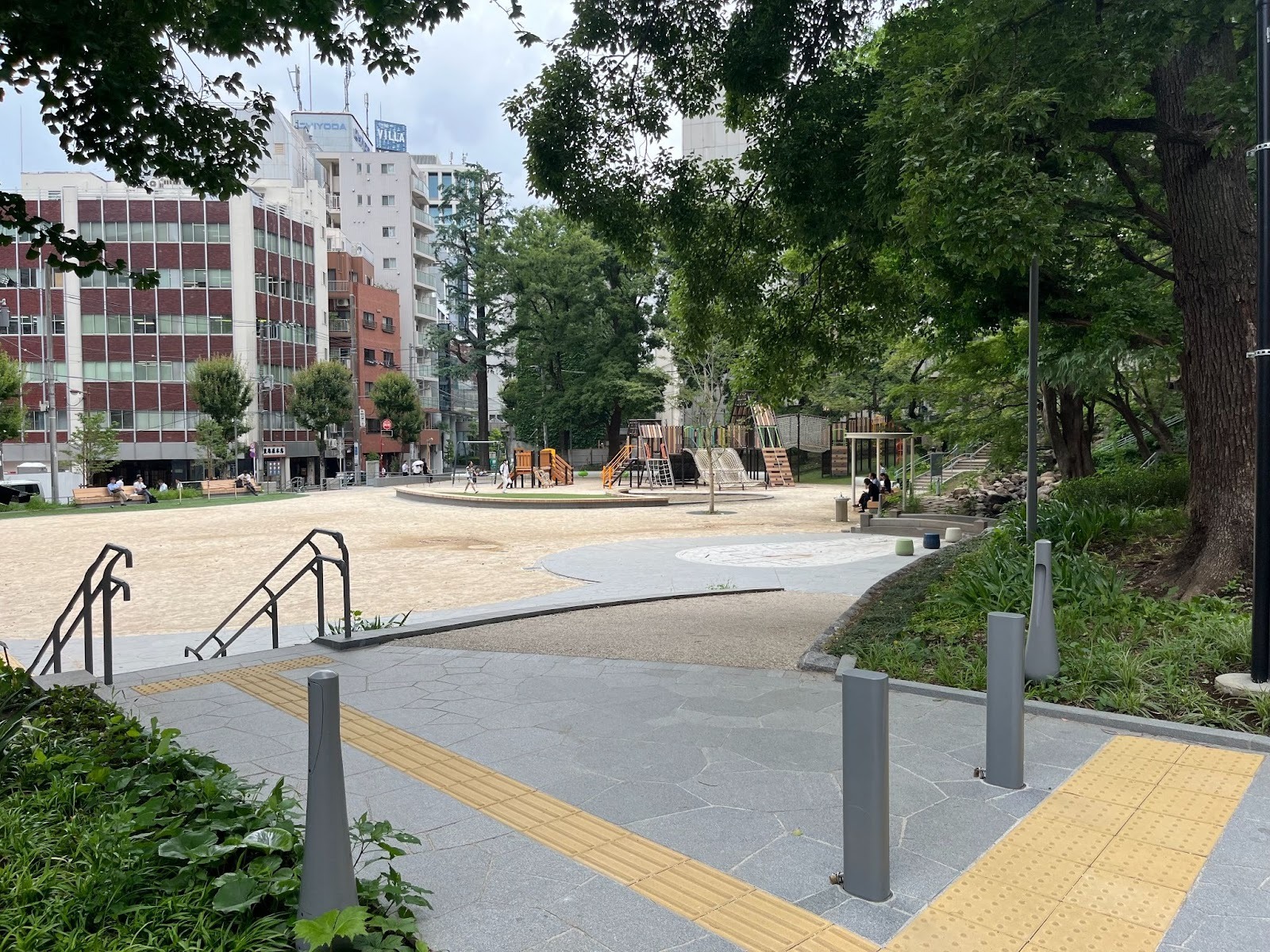 (柚﨑)僕もこの場所には、行ったことがあります!自分が3年生のときに、履修していた講義がきっかけで訪れましたが、整備が完了した直後だったこともあり、多くの人が利用していた印象があります。僕が行ったのもお昼時でしたが、遊具で遊ぶ人やベンチに座って休憩する人、芝生に直接座りながらご飯を食べている人もいて、多様なアクティビティを見ることが出来ました。また、勾配の急な坂に隣接する公園なのですが、階段だけでなく、スロープもしっかり用意されていて、誰でも使いやすい公園なんじゃないかと思います。
