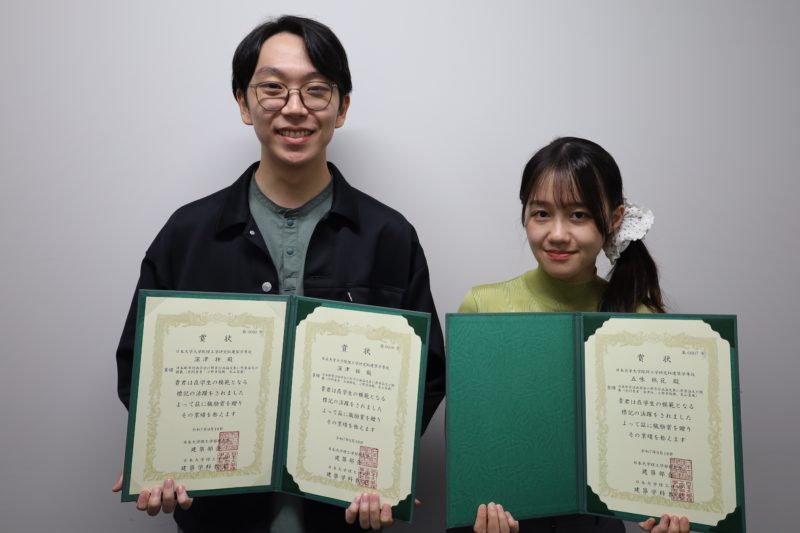 M2・深津壮さん、五味桃花さんが日本大学理工学部建築学科『駿励賞』受賞