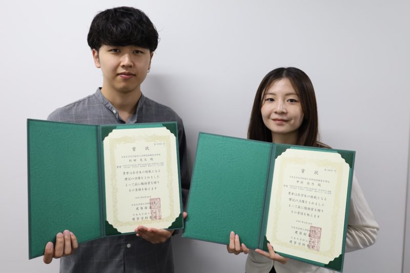 M2・松田晃太さん、中村佳乃さんが日本大学理工学部建築学科『駿励賞』受賞