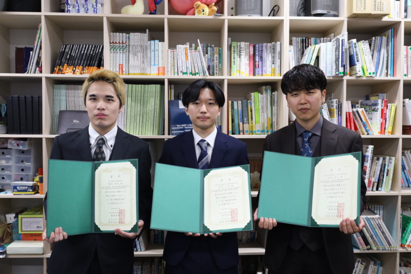 2025年3月19日(水)、都市計画研究室(泉山ゼミ)に所属する大学院・建築学専攻・博士前期課程2年(当時)の菅原悠希さん、松田晃太さん、そして学部4年(当時)の植田智大さんの3名が、日本大学理工学部校友会より日本大学理工学部建築学科「駿励賞」を受賞しました。