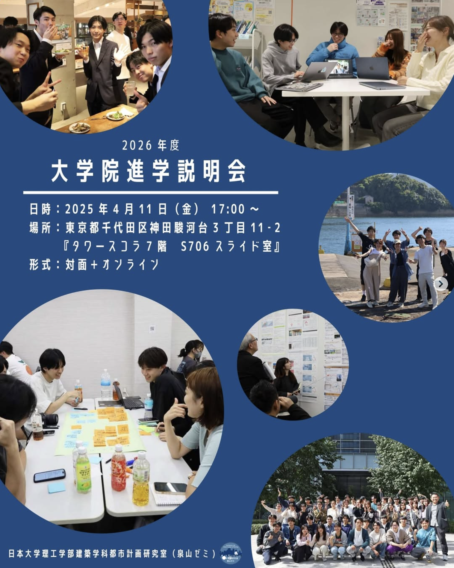都市計画研究室(泉山ゼミ)の大学院進学予定者や、プロジェクトに関心がある大学生、社会人、在学生のみなさんへ、2026年度大学院進学説明会のお知らせです。