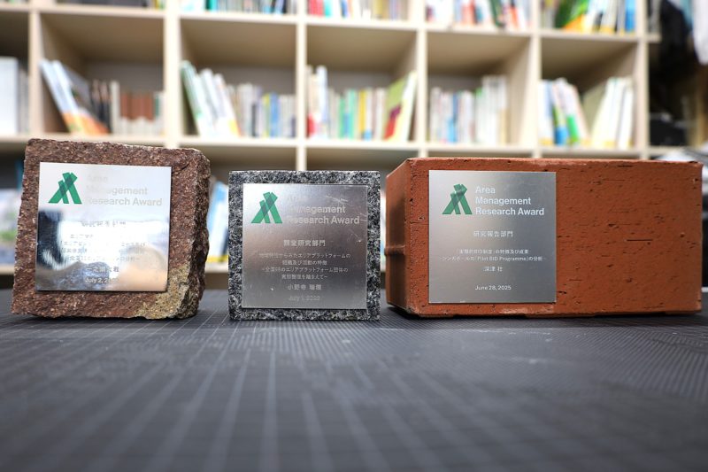 Area Management Research Award 2025 研究報告部門受賞の盾(写真右 :札幌市北3場広場の『煉瓦』)