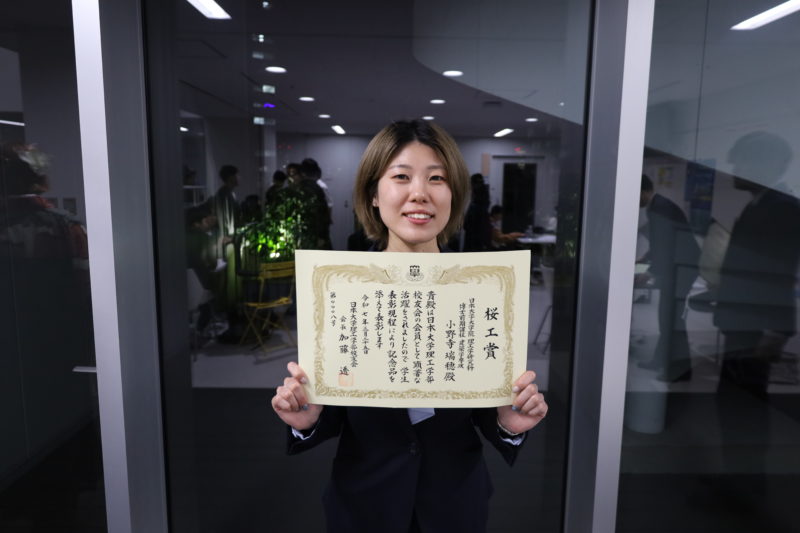 卒業生・小野寺瑞穂さんが日本大学理工学部校友会『桜工賞』を受賞